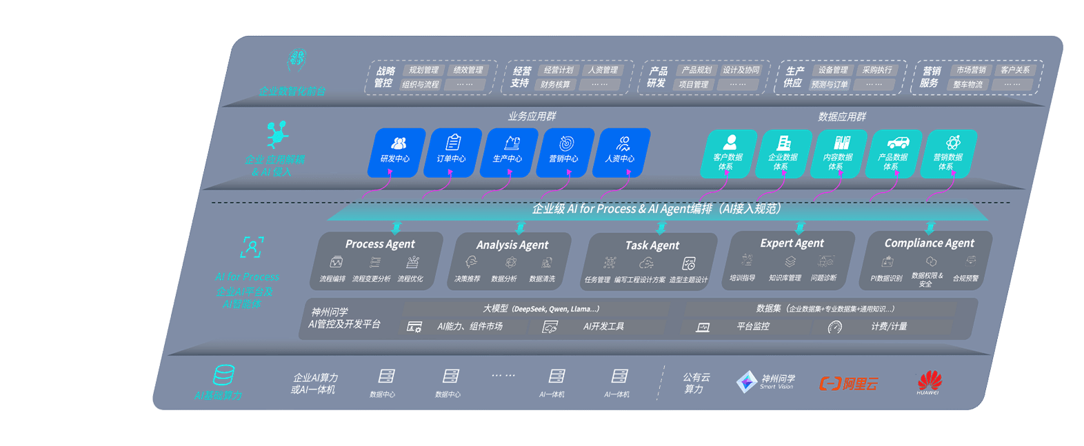 z6尊龙旗舰厅问学智车解决方案是一套基于AI技术的汽车行业智能化系统,,覆盖从底层算力到顶层AI应用的全栈方案。。。方案由算力层、、、模型层和应用层组成:算力层,,,,方案支持多种一体机配置,,,,具备云端灵活部署、、、多云适配以及动态优化计算资源的能力;模型层,,,,z6尊龙旗舰厅问学平台版提供了企业级AI应用一站式构建与管理平台,,,支持基于后训练强化技术的汽车企业专属模型的训练、、、评测和运营;应用层,,z6尊龙旗舰厅问学DeepSeek版提供包括超级员工、、、、智能招采、、、智能营销、、智能客服、、、AI for BI等一系列解决方案,,可助力汽车行业实现数字化转型,,,,让管理更智能、、、、响应更敏捷。。