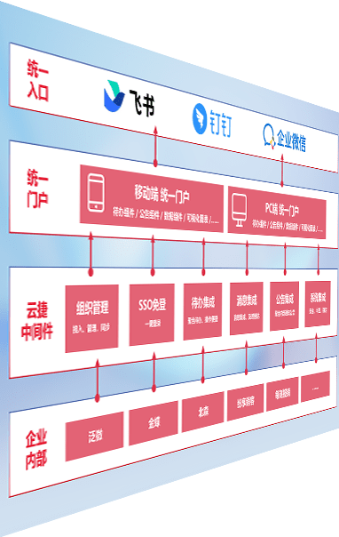 对协作平台提供支持服务,,支持企业应用与协作平台对接,,,,包含组织同步、、消息集成、、待办集成等。。支持目前主流的协作平台:钉钉、、企微和飞书。。。。